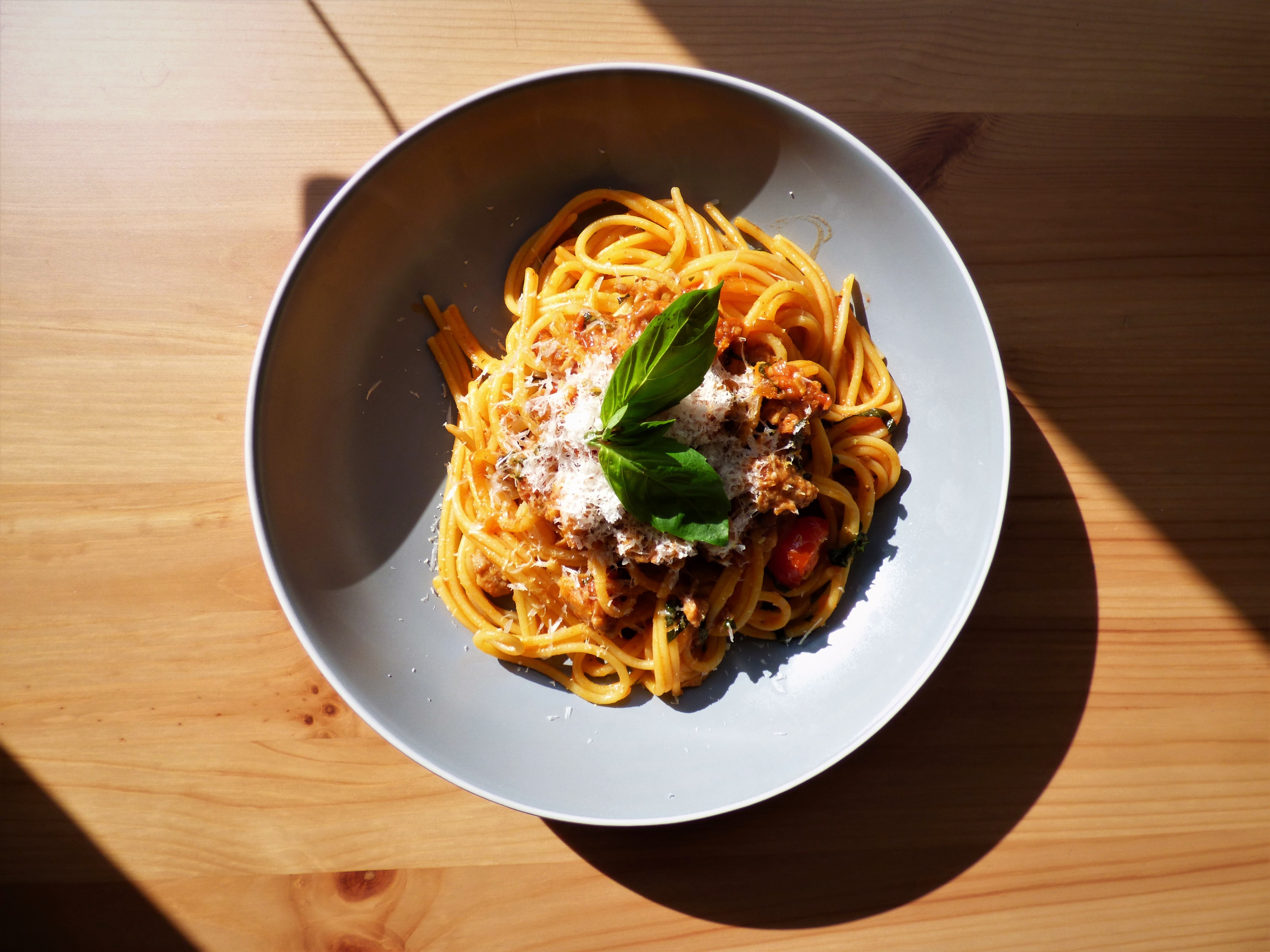 If you do not have all of the ingredients don’t worry! Swap out the fresh rosemary for dried rosemary or just whatever herbs you have got! Oregano, or just mixed herbs will do. If you don’t have sausages, use some chicken or ground beef. This recipe will make a delicious pasta, but if you don’t have all the ingredients just use it as a sort of guideline and use what you’ve got. Pasta + herbs + protein + tinned tomatoes + onion. You could even add some spinach to sneak in some greens and for some added fibre.