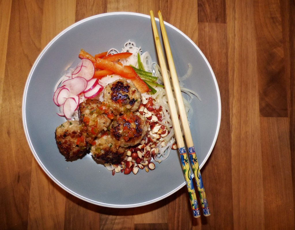 - You can make the meatballs, the sauce and chop your veg in advance, however I would have the rice noodles the day you intend to eat the dish as they don’t keep very well once rehydrated. But most rice noodles are so easy to prepare and can be done in around 3-5 minutes; most you don’t even have to cook; you leave them in a bowl of boiled water.